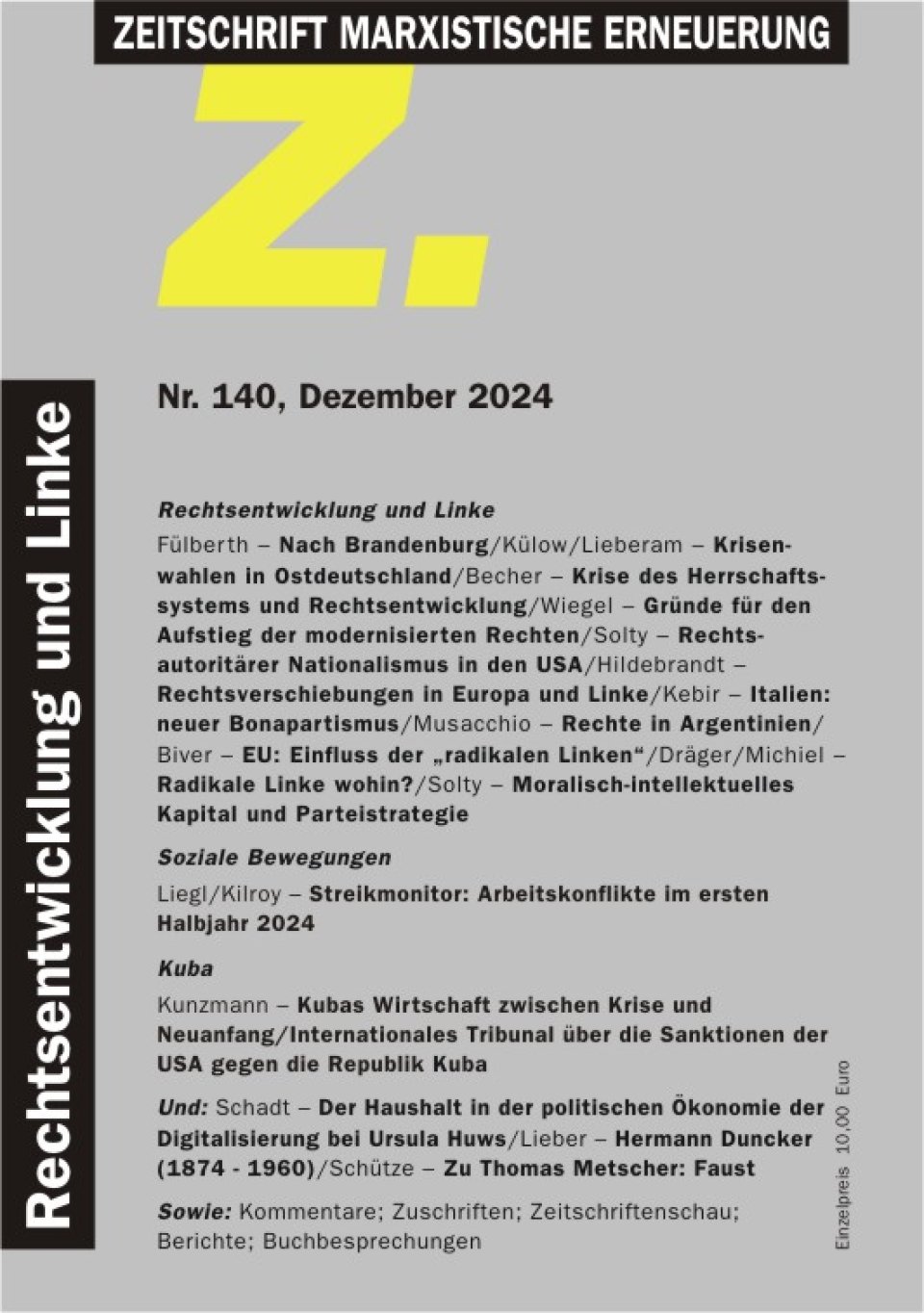 Die politische Rechtsentwicklung in der Bundesrepublik und in der EU ist unübersehbar. In welchem Verhältnis steht sie zu den aktuellen Krisenprozessen und den durch sie verursachten Krisenängsten und Verunsicherungen? Trifft es überall zu, dass die dominierende Krisenreaktion nach rechts geht? Welche Rolle spielen linke Kräfte gegenwärtig noch? Diese Fragen behandelt der Schwerpunkt des vorliegenden Heftes unter theoretischen, historischen und internationalen Aspekten.